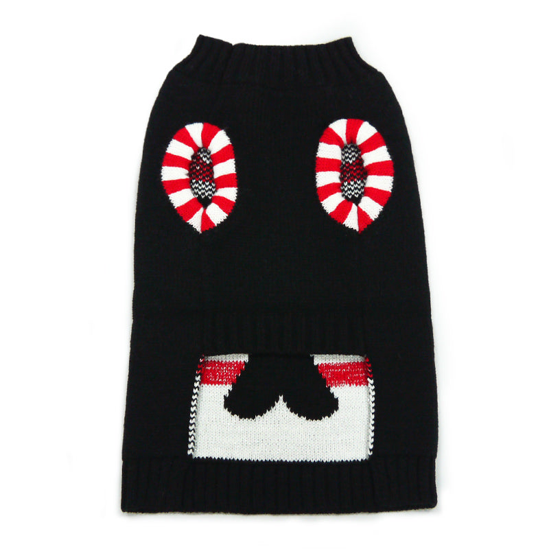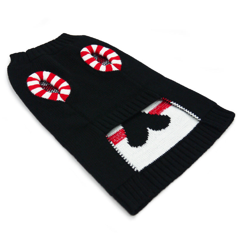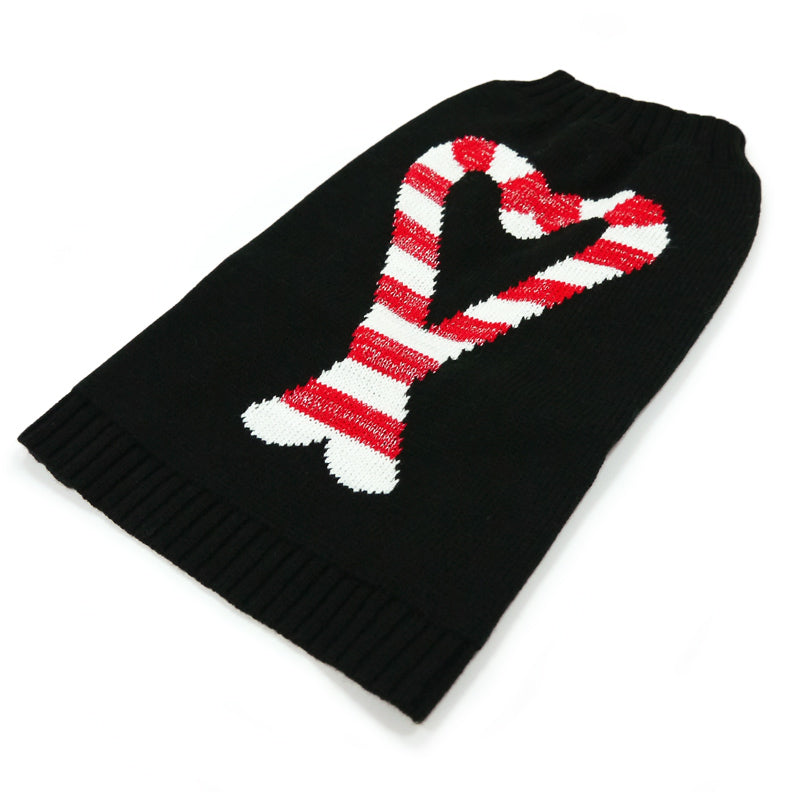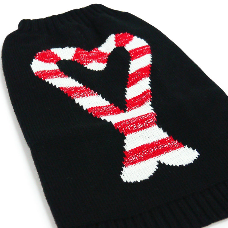 Introducing our festive Candy Sweater, adorned with delightful pair of red candy canes to for a heart, set against a solid black background. This sweater exudes a joyful holiday spirit, perfect for celebrating the season with your furry companion. Crafted from soft and high-quality materials, it ensures maximum comfort and coziness for your pet. Additionally, a leash hole is thoughtfully included, making it easy to take your pup on winter walks while staying stylish. Embrace the holiday cheer and charm with this delightful and well-crafted sweater!