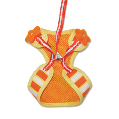 Yellow trim and orange vertical stripes EasyGO with two decorative flowers on the shoulders.