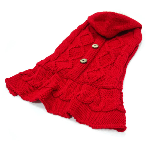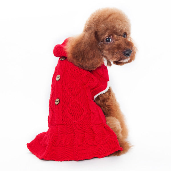Introducing our Cable Knit Sweater Dress with Hood – the perfect blend of style and coziness for your beloved pet. Crafted with cable knit, this dress offers both warmth and a charming textured look. The added hood and buttons give an extra layer of chicness, making your pet stand out from the crowd. But that's not all – for your convenience, we've included a leash hole, ensuring that your pet stays both fashionable and ready for outdoor adventures.