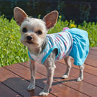 Elevate your style with our Sweet Heart Dress featuring modern, whimsical heart graphics over delicate light stripes. Complete with a charming pocketed heart skirt and a convenient leash hole for your furry friend.