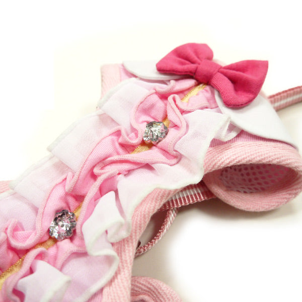 Pretty centered ruffle with rhinestones accented with a pink bow