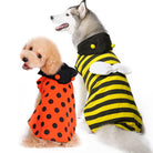 This versatile reversible hoodie serves as a quick transformation for your pup, turning them into either an adorable dotted ladybug or a playful striped bumblebee. Putting it on is a breeze with the Velcro closure, and it features a detailed hood, a wing on the back (bumblebee), and a convenient leash hole. Can be used as an everyday wear or as a fantastic Halloween costume option.