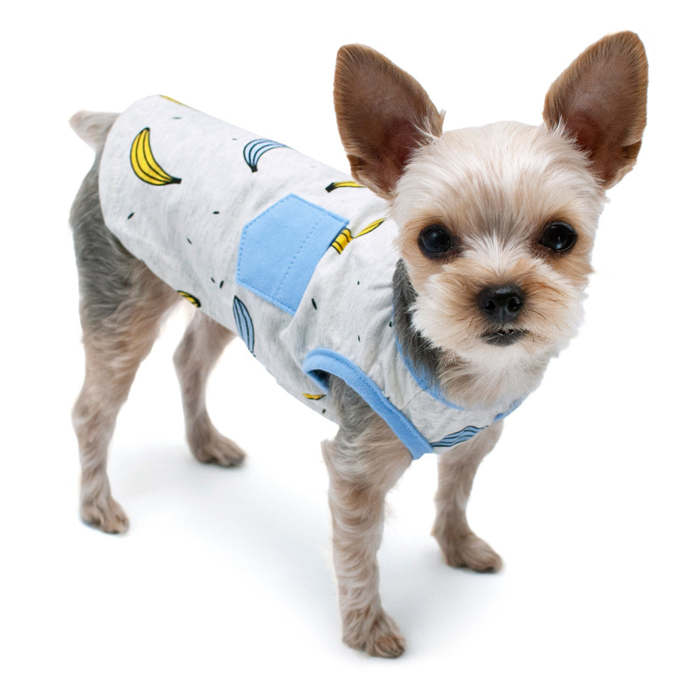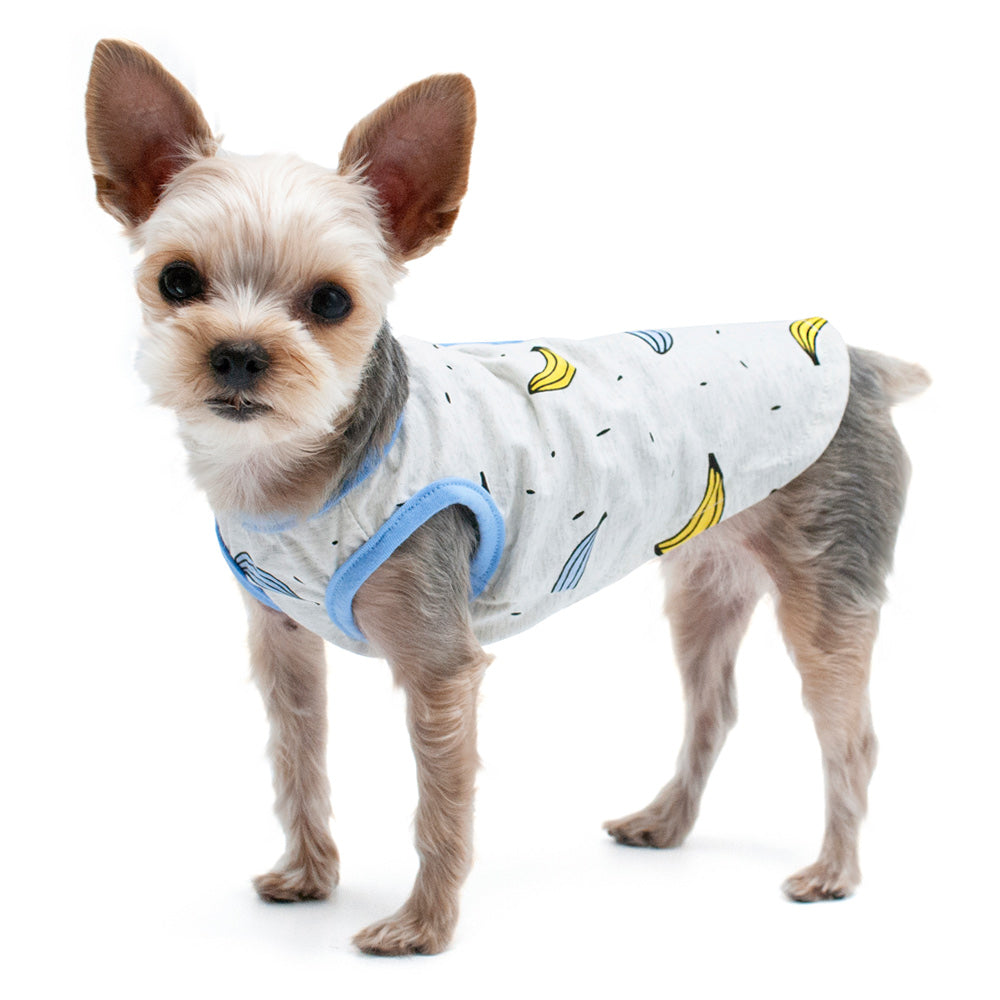 Simple tank showcasing a delightful banana graphic and contrasting pocket design. With a leash hole included, it's perfect for outdoor walks. Embrace the fun and stylish look for your pup with this well-crafted tank!