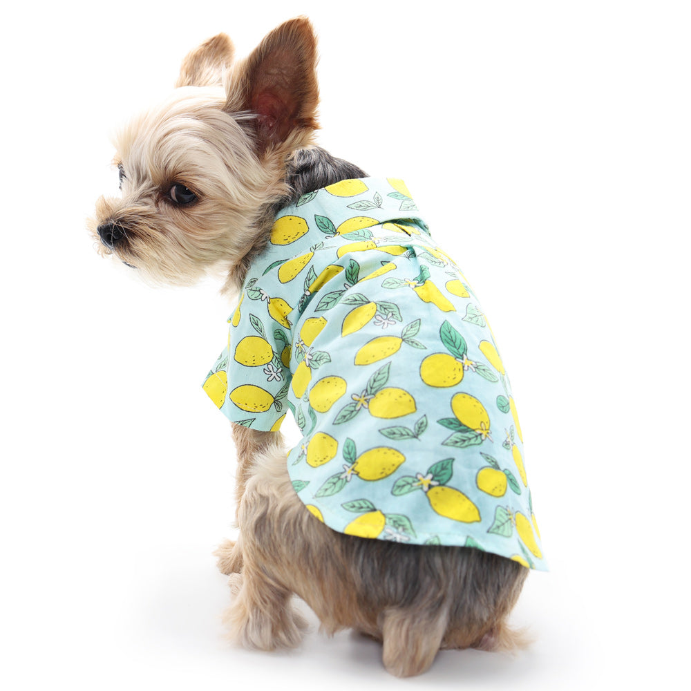 Light summer button-up shirt adorned with delightful lemon graphics. This shirt is perfect for the sunny season and offers a leash hole for added convenience during outdoor adventures with your furry companion.