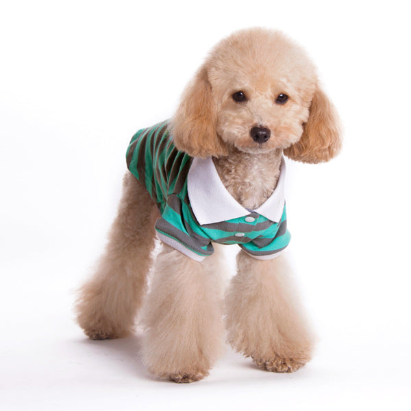 Elevate the timeless polo with vibrant stripes for a modern twist. Crafted from 100% cotton, these shirts are perfect for any occasion. Complete with a leash hole, your pup is ready for stylish outings!
