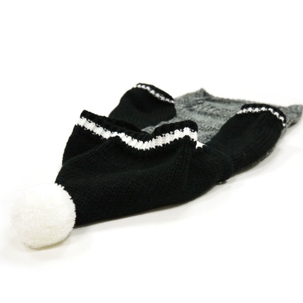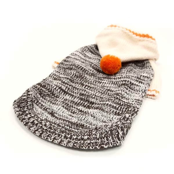 Experience the allure of our mix-knit pullover sweater, featuring a striking contrasting color pompom hoodie and trim. This trendy urban essential is perfect for everyday wear, adding a touch of chic style to your pup's wardrobe. With a leash hole thoughtfully included, walks become a breeze while your furry friend looks effortlessly fashionable.