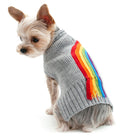 Presenting a delightful gray turtleneck sweater, exuberantly adorned with a rainbow-colored scarf cascading down the back, accompanied by playful fringes at the end. This charming outfit boasts both comfort and style. Additionally, it comes equipped with a leash hole, ensuring that your pup can strut their stuff with ease on every walk.