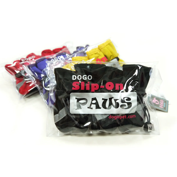 Our Slip-On Paws are an easy and comfortable solution to keep your furry family member safe outdoors. These strapless boots are crafted with a soft, flexible material for a secure fit and feature V-shaped reflector stripes for visibility. The dotted traction sole provides grip for slippery surfaces. Get the perfect fit with our easy to follow inner sole base measurements.