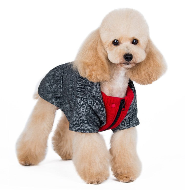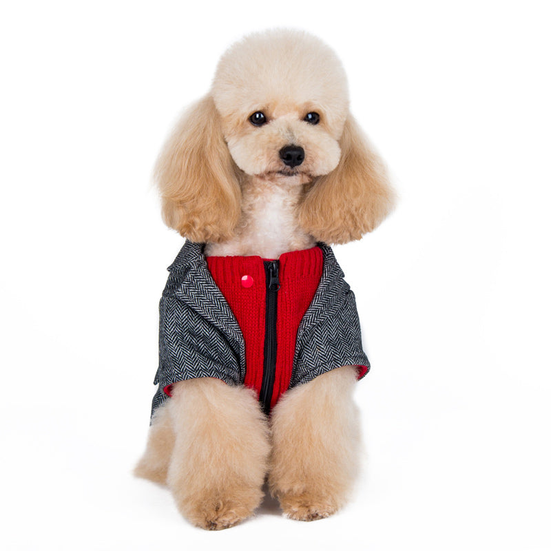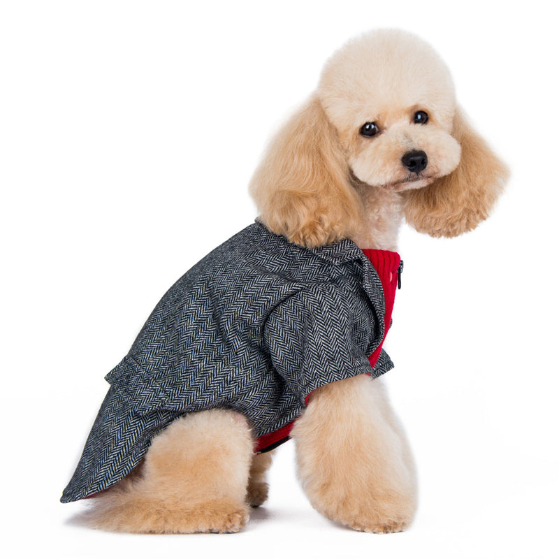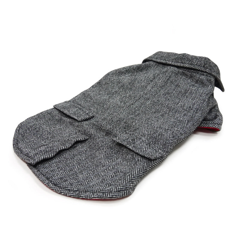 Our Tweed Blazer, the epitome of sophistication and warmth for your beloved pet. This blazer is crafted with tweed fabric including accented pockets add a touch of elegance, making it not just a winter essential but a fashion statement.