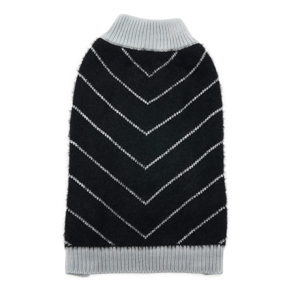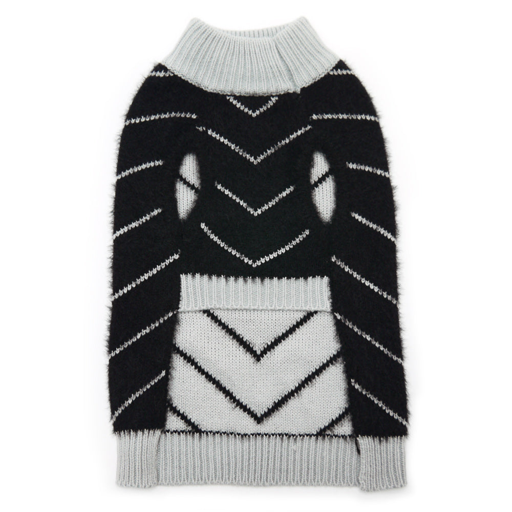 Mohair sweater crafted from soft and luxurious mohair. The sweater features a stylish V pattern design, complemented by contrasting trim on the collar and bottom. With a leash hole thoughtfully included, it ensures convenient outdoor walks with your furry companion. Embrace the elegance and comfort of this well-crafted sweater, making your pup look both chic and cozy in the colder weather!