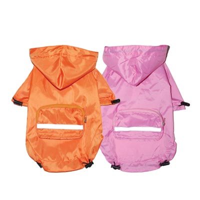 Raincoat with Shoulder and Chest Coverage. This stylish yet practical raincoat is designed for simplicity and convenience. Featuring a Velcro closure and leash hole, it's effortless to put on and take off, making it perfect for unexpected showers. The fold-in-pouch design ensures compact and effortless portability.